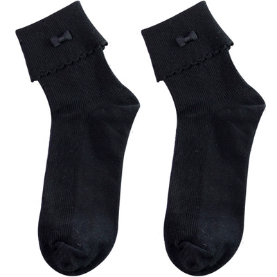 Mùa hè mỏng phần còng ống vớ nữ cotton Hàn Quốc mới đại học gió Nhật Bản nơ trắng đen - Vớ sợi tre