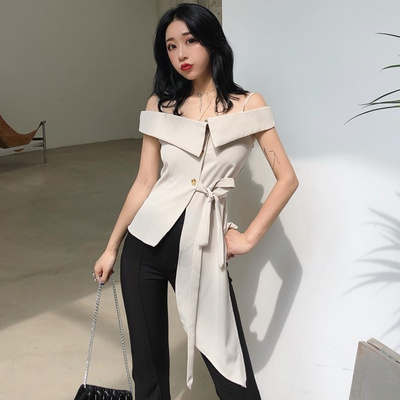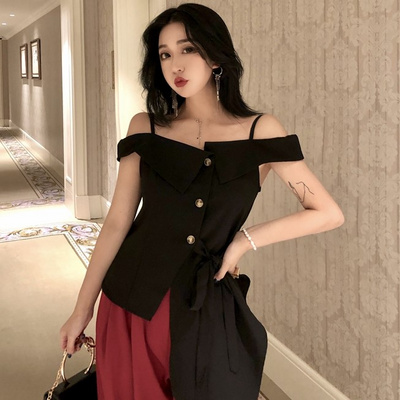 Mùa hè phiên bản Hàn Quốc của Slim gợi cảm không thường xuyên thắt lưng áo sơ mi đoạn ngắn mặc lệch vai nhỏ yếm vest vest - Áo ba lỗ