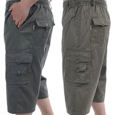 Mùa hè quần trung niên nam cắt cúp cha trung niên nạp phân để tăng eo cao thun thun quần short nhiều túi