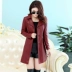 Mùa thu đông 2018 mới Áo khoác da nữ Hained dài phần Slim size lớn Áo khoác da cừu Hàn Quốc