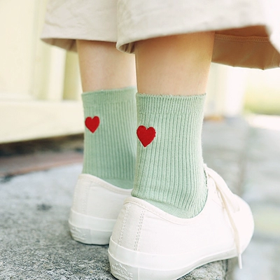 Mùa thu Nhật Bản Bộ môn Cao gót Thêu Cao su Gió Ống ngắn Bốn Mùa Bông Tim Trái Tim Ống Vớ Nữ Văn - Bít tất nữ