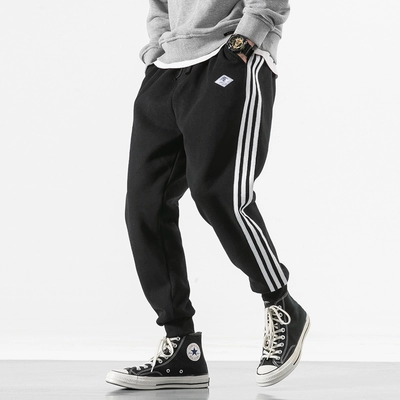 Mùa thu và mùa đông cộng với nhung dày dầy chân quần bó sát nam giản dị đan quần kín nam Harlan sọc hoang bảo vệ quần thủy triều