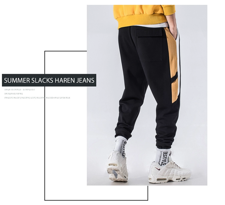Mùa thu và mùa đông mô hình thủy triều thương hiệu siêu quần cháy hậu cung quần nam cộng với nhung dày dầy chân quần thể thao kích thước lớn đóng miệng quần