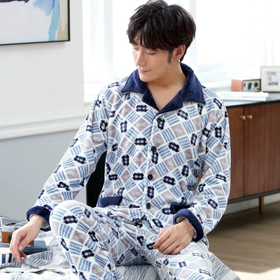 Mùa thu và mùa đông san hô nhung đồ ngủ nam mùa đông cộng với đồ ngủ nhung dày cộng với chất béo lớn kích thước phù hợp với dịch vụ nhà flannel