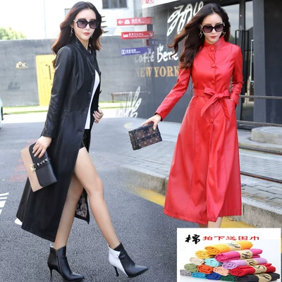 Mùa xuân 2017 thu mới của phụ nữ Áo khoác da Hained áo khoác da cừu kích thước lớn với áo khoác da dài