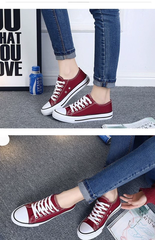 Mùa xuân giày vải nữ sinh viên phiên bản Hàn Quốc thấp để giúp giày đế bằng những người yêu thích giày hoang dã giày thoáng khí màu đen và trắng