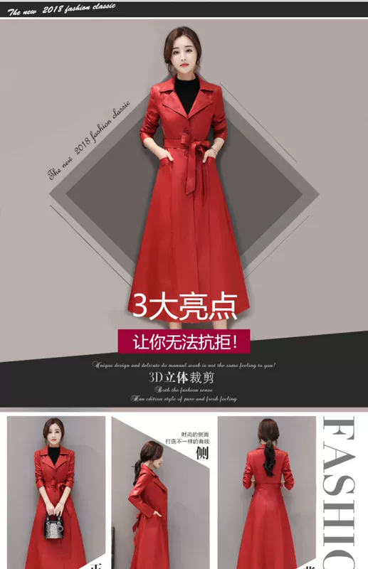 Mùa xuân và mùa thu 2019 Áo khoác da nữ dài trên đầu gối Châu Âu phiên bản mới của Hàn Quốc tự tu luyện cộng với áo gió bằng vải cotton thủy triều