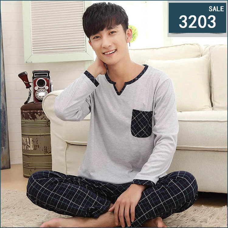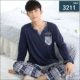 Mùa xuân và mùa thu nam bộ đồ ngủ cotton dài tay cộng với phân bón để tăng dịch vụ gia đình bộ đồ ngủ trung niên cotton