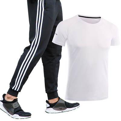 MUJI Ε 港 套装 Áo thun thể thao nam mùa hè mỏng manh - Quần áo tập thể hình