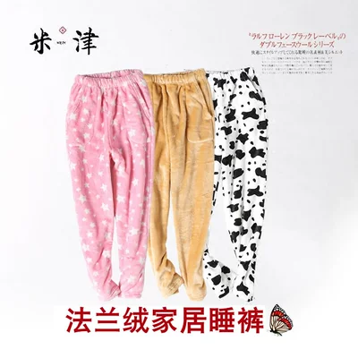 Nữ flannel san hô lông cừu nhà quần nam và nữ ngủ quần mùa thu và mùa đông ấm áp sống quần mới đồ ngủ dày