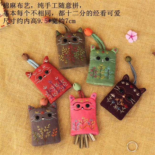 Nữ hoạt hình mèo nhỏ mặt dây chuyền búp bê nhỏ dễ thương xe móc khóa vải dây rút gói phổ quát - Trường hợp chính