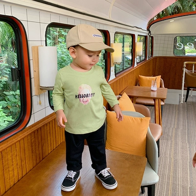 Peanut quần áo trẻ em hoang dã dài tay cổ tròn áo thun 2019 mùa xuân và mùa thu nam bé phim hoạt hình truyền nhiệt - Áo thun