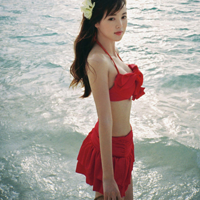 Phiên bản Hàn Quốc của vòng ngực nhỏ bằng thép mới tập hợp lá sen đỏ treo cổ bikini ba mảnh bikini xem trước áo tắm phụ nữ - Bikinis