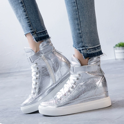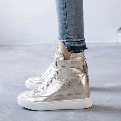 Phiên bản Hàn Quốc tăng giày nữ cao giúp giày thời trang nữ phẳng với giày thủy triều vàng và bạc mùa thu - Giày cao gót