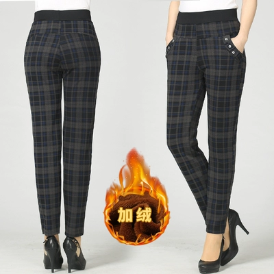 Phụ nữ trung niên mùa thu đông mặc quần âu mới cho nữ cộng với quần nhung mẹ co giãn cao eo rộng quần rộng ấm áp