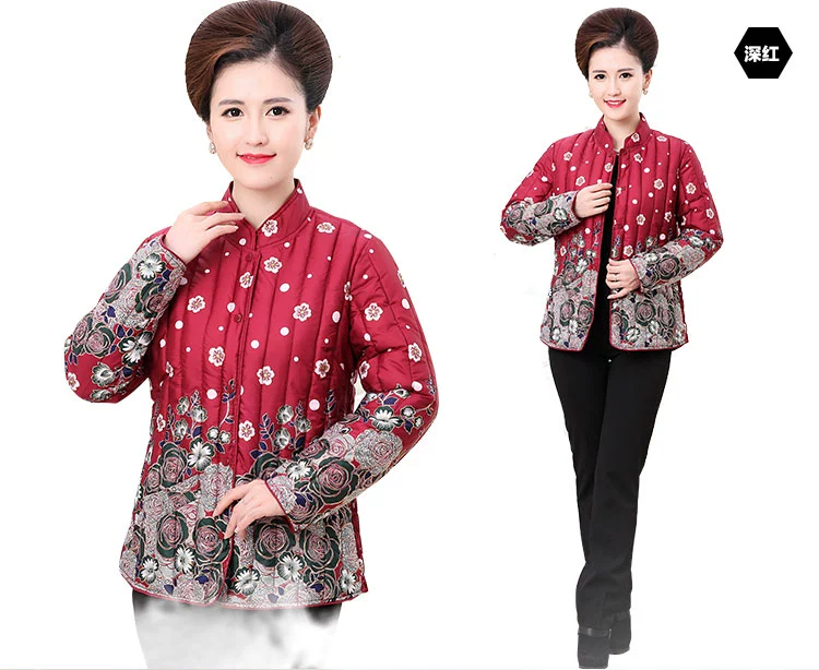 Phụ nữ trung niên và người già ấm áp áo bông và áo phân bón để tăng áo khoác mỏng và nhẹ của mẹ