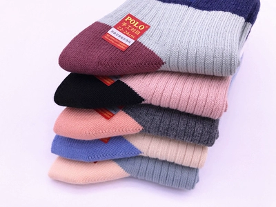 POLO mùa thu và mùa đông vớ nữ sọc hoang ấm áp dày len vớ mùa đông ống tương phản màu sắc vớ nữ giản dị - Bít tất nữ