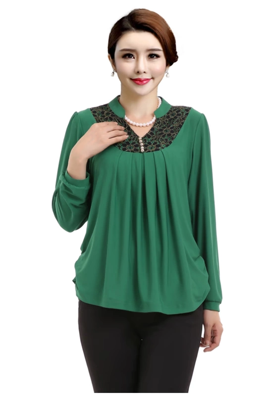 Quần áo phụ nữ trung niên mùa thu đáy quần áo mẹ dài tay áo thun quần áo mùa xuân và mùa thu 40-50 tuổi người trung niên kích thước lớn