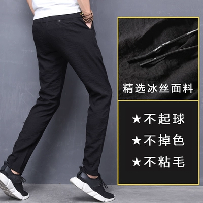 Quần dài nam mùa hè mỏng phần cha trung niên băng lụa thoáng khí mùa hè thẳng quần siêu mỏng - Quần tây thường