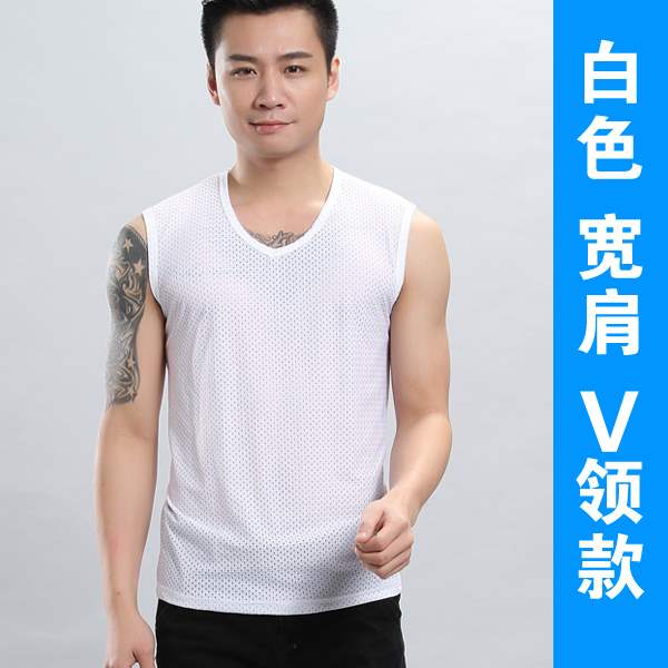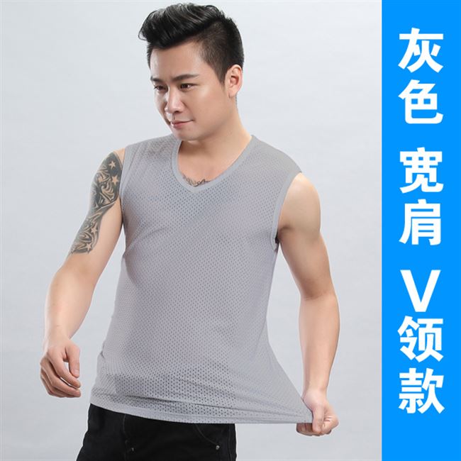 Quần lưới nam mắt hẹp vai thoáng khí mồ hôi vest thể thao thể thao nhanh khô mùa hè không tay rộng vai cộng với phân bón XL - Áo vest