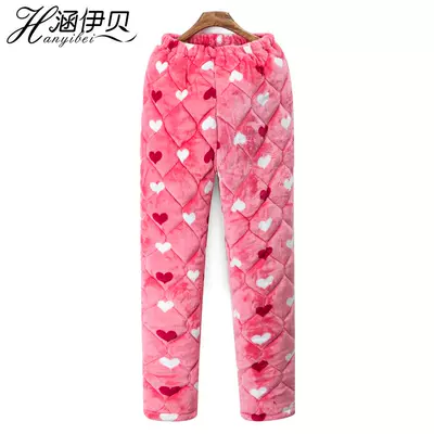 Quần mùa đông nữ quần ba lớp dày nhung san hô ngủ quần nữ flannel ấm áp quần nhà giản dị