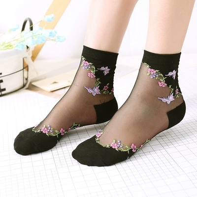 Quần tất nữ mỏng Hàn Quốc vớ cotton thủy tinh cotton màu đen trong suốt mùa thu và mùa đông vớ trong ống vớ cotton pha lê đáy - Vớ