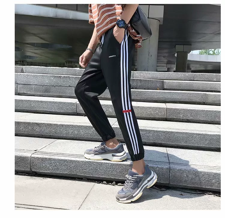 Quần thể thao nam 9 điểm mùa hè Phiên bản Hàn Quốc của quần ống rộng giản dị nam tự tu 9 điểm quần chân harem mỏng - Quần Harem