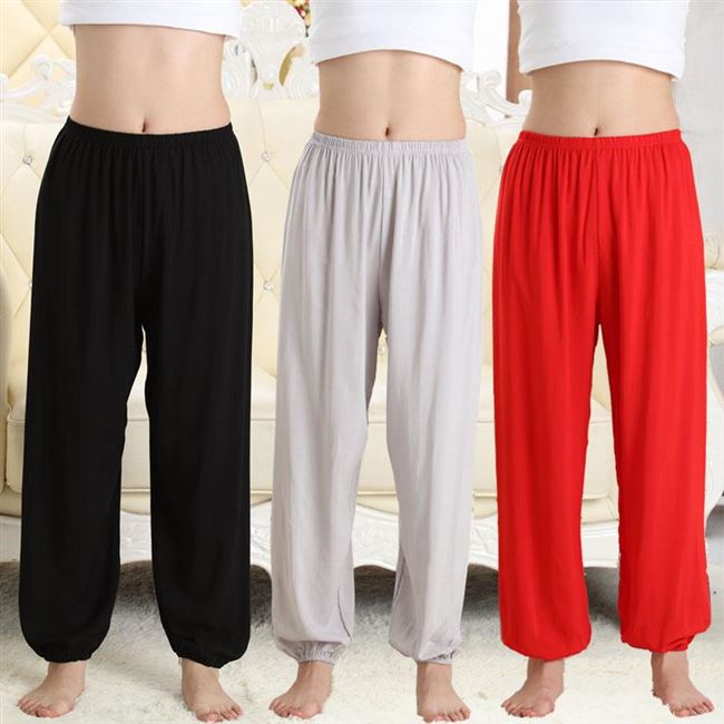 Quần yoga thường xuyên cho bố ngủ quần nữ ngủ mát mẻ thoải mái thả lỏng quần lụa cotton nam - Quần tây