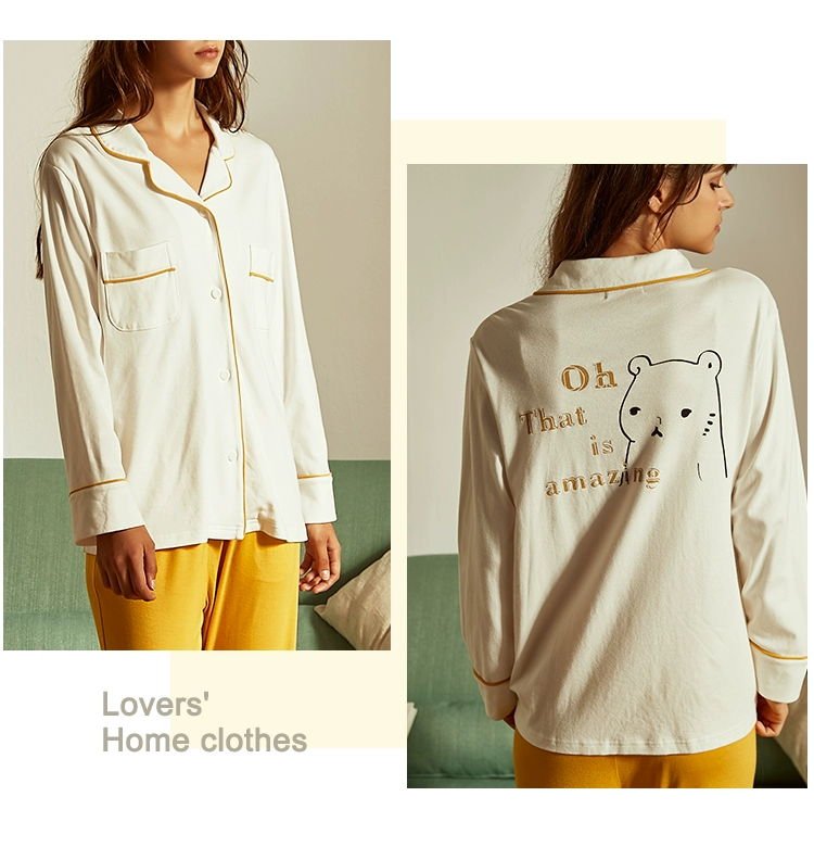 Royle ngọt ngào và đáng yêu cặp đôi đồ ngủ cotton nam và nữ mùa thu đông mùa đông phù hợp với dịch vụ nhà 18273HL