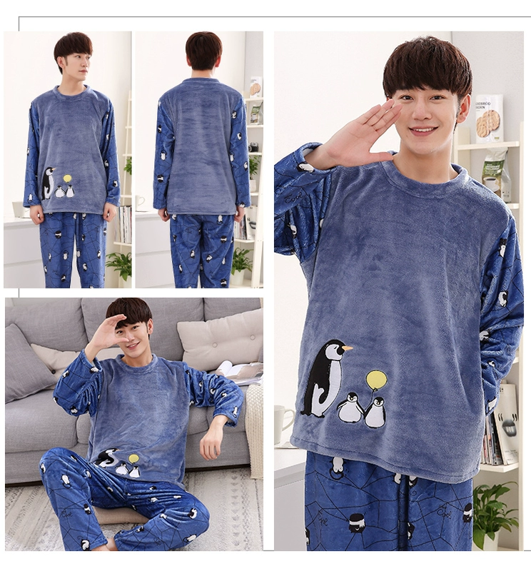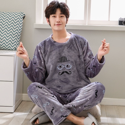 Thiếu niên nhung san hô đồ ngủ nam flannel mùa thu và mùa đông mô hình trường trung học tăng trưởng tay áo phù hợp với cậu bé béo lớn sang trọng