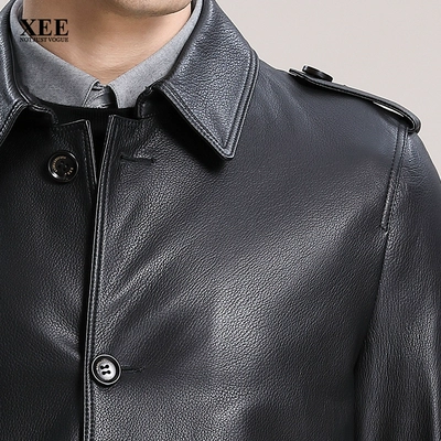 Trung tâm mua sắm XEE với cùng một đoạn mùa thu và mùa đông nam màu đen ve áo đơn ngực dài phần da cừu cao cấp trench coat - Quần áo lông thú