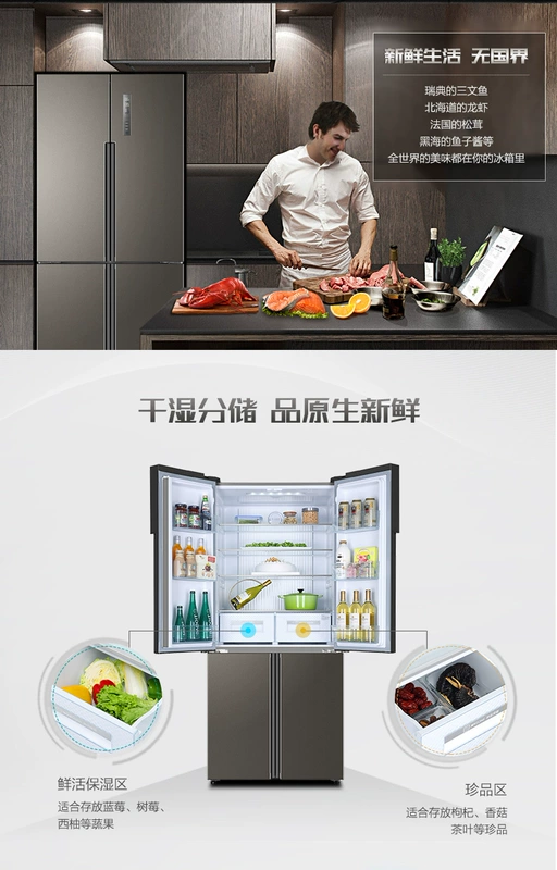 Tủ lạnh Haier chéo chia bốn cửa biến tần im lặng làm mát bằng không khí Haier / Haier BCD-470WDPG - Tủ lạnh