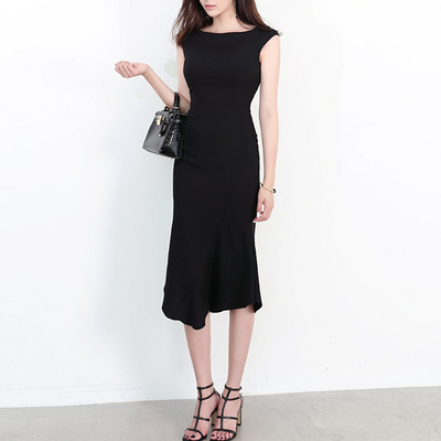 Váy đen một vai không tay nữ mùa hè dài Hepburn phong cách thanh lịch váy eo thon - Sản phẩm HOT