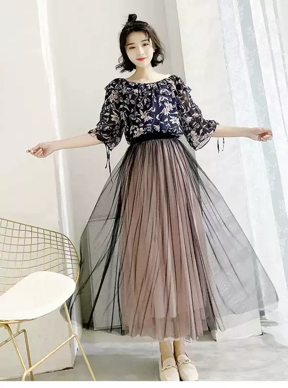 Váy lưới mới rủ xuống mỏng giữa váy dài xếp li pettiskirt trẻ nhỏ cỡ lớn thun dài váy mùa hè - Váy