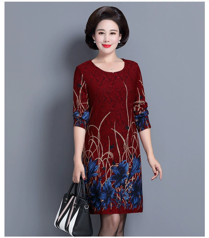 Váy mùa thu cho mẹ trung niên 2018 mới 40-50 tuổi quý phái dài váy dài đến đầu gối