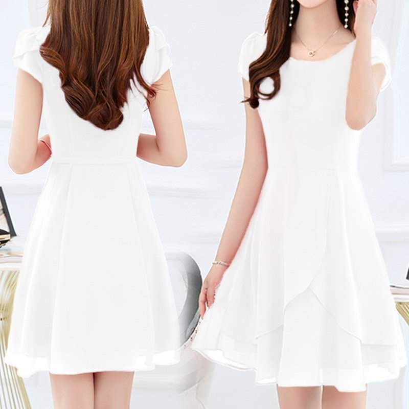 Váy voan nữ nữ tay ngắn hè 2019 mới dài phần eo thon thon phần mỏng một váy - A-Line Váy