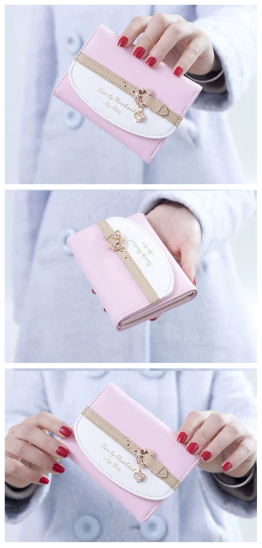 Ví nữ Tango ngắn nữ phiên bản Hàn Quốc của ví tiền nhỏ dễ thương tương phản tươi màu tương phản ba lần hoạt hình ví mỏng - Ví tiền