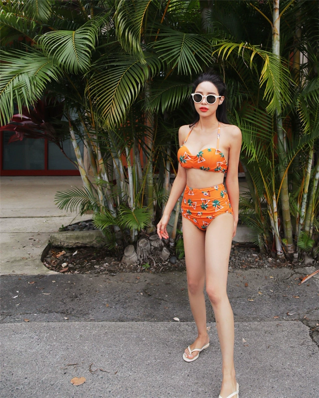 Wei Naibo 9959 Thái Lan in ấn du lịch tập hợp bikini nhỏ ngực nữ eo cao đã mỏng che bụng bikini - Bikinis