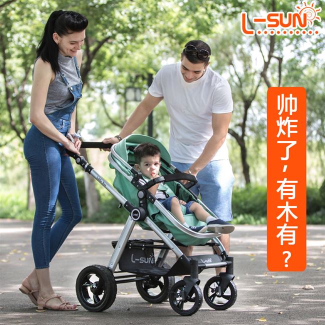 Xe đẩy phong cảnh cao có thể ngồi ngả có thể ngồi xe đẩy em bé di động hai chiều gấp nhẹ - Xe đẩy / Đi bộ