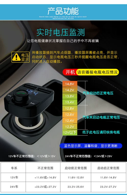 Xe MP3 máy nghe nhạc Bluetooth U đĩa thẻ máy xe hơi USB kép điện thoại di động sạc thuốc lá bật lửa sạc xe hơi - Trình phát TV thông minh