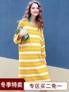 Bà bầu mặc chất liệu mùa thu đông trong phần dài của bà bầu áo len mới buông lơi đầu bà bầu váy áo bà bầu