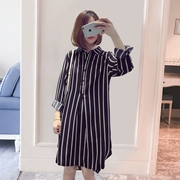 Trang phục bà bầu mùa thu 2019 mới Hàn Quốc áo dài tay sọc thời trang xuân hè thu đông cho bà bầu dài mùa thu - Áo thai sản