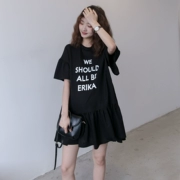 Bà bầu trong mùa hè áo dài mùa hè giản dị in chữ T-shirt váy thủy triều mẹ rộng cỡ đầm thon - Áo thai sản