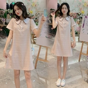 Đầm bà bầu khâu thời trang Hàn Quốc phiên bản dài cỡ lớn Váy ngắn tay cho bà bầu Váy ngắn tay mùa hè - Áo thai sản