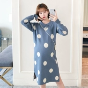 Trang phục bà bầu mùa thu dài tay đan phiên bản Hàn Quốc của phần dài Váy đầm bà bầu thời trang mới đan hàng đầu - Áo thai sản