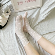 Vớ lưới retro 雅 花 vớ nữ màu trắng vớ mùa hè siêu mỏng co giãn thoáng mát - Vớ sợi tre