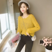 Quần áo mùa thu mỏng manh lỗ rỗng tóc tua rua đan áo len khâu thêu lưới ngắn tay dài áo len thủy triều