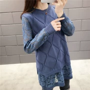 Cổ áo ren thấp cổ áo sơ mi nữ tay dài 2019 mới xuân và thu đông nữ dài áo len rỗng áo len rộng - Vòng cổ áo len