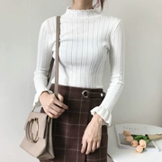 Mùa thu gió sang trọng khí chất nền thời trang rắn màu nửa cao cổ áo cánh hoa tay áo dài đan áo đáy