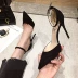 2019 Xia Xiao Khánh cô gái trẻ màu nude giày cao gót màu đen mũi nhọn da lộn màu đen với đôi giày đơn rỗng - Sandal